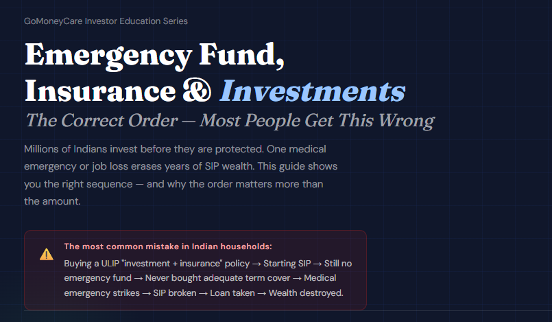 Millions of Indians invest before they are protected. One medical emergency or job loss erases years of SIP wealth. This guide shows you the right sequence — and why the order matters more than the amount.
