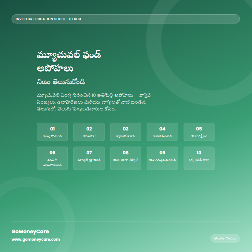 తెలుగు పెట్టుబడిదారుల కోసం రాసిన ప్రత్యేక గైడ్ — మ్యూచువల్ ఫండ్ గురించిన 10 అపోహలు, నిజాలు మరియు real examples తో.